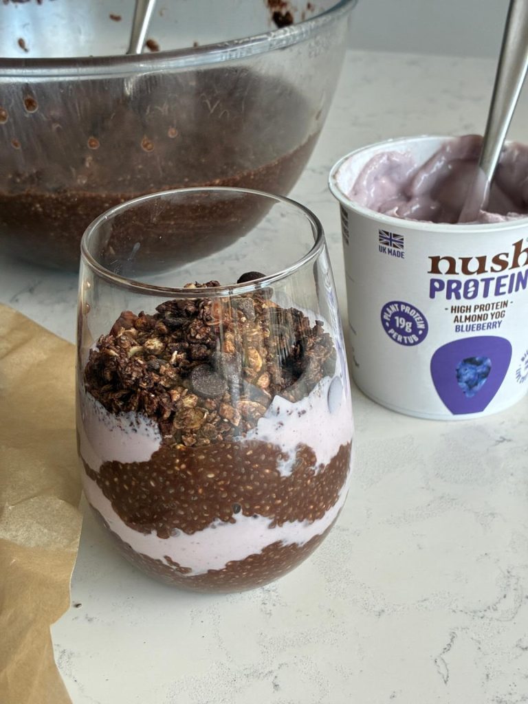 Vegan, sweetened with just maple syrup and loaded with fibre and protein rich chia seeds this is one of my own personal favourite breakfasts. I like to serve mine with vegan yogurt and chocolate granola sprinkled on top for a lovely crunchy contrast. It also works really well with a berry compote or even a spoonful of berry jam.